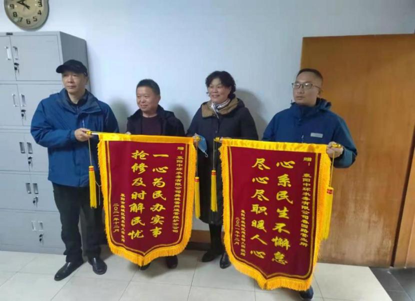 12月24日,建昌幼兒園劉校長將兩面分別繡著“一心為民辦實事 搶修及時解民憂”和“心系民生不懈怠 盡心盡職暖人心”的錦旗送到了襄陽中環(huán)水務有限公司,劉校長激動地說:“謝謝你們這么快地給我們解決了大問題!你們是真正地為民服務呀!”