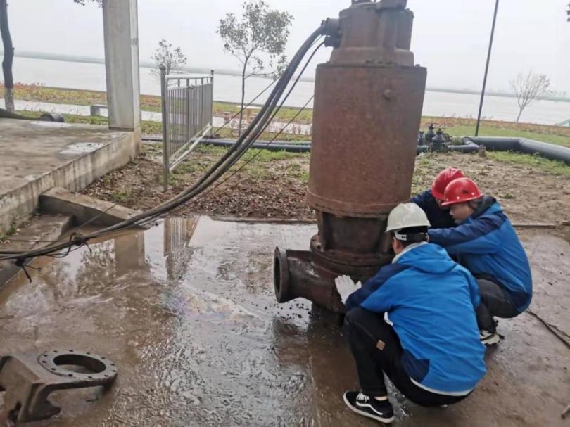 4月6日,宜城天河供水公司水廠按崗位標(biāo)準(zhǔn)化管理要求對取水車間南側(cè)沉井潛泵進(jìn)行了月度檢查維護(hù),檢查時發(fā)現(xiàn)4#潛泵在運(yùn)行時會偶爾發(fā)出‘叮咚’撞擊聲,再觀察4#取水潛泵控制柜電流、電壓、流量正常后,機(jī)修人員初步判斷4#潛泵進(jìn)水口周圍可能有異物。