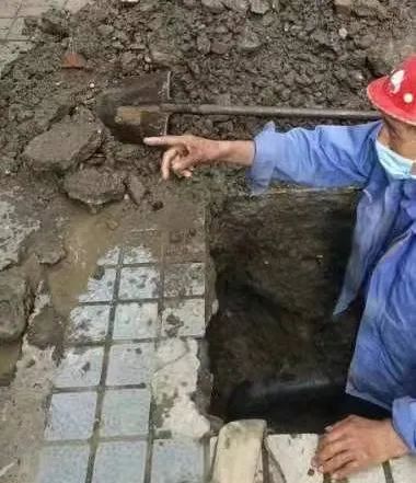 接著報單、通知維修隊開挖,“功夫不負有心人”,當維修工作坑挖至地面一下約1米左右的地方,水流上涌,這段DN110的PE管漏點被精準找到維修??粗S修人員停水、維修、恢復供水一氣呵成,用戶們一顆懸著的心也終于放下。
