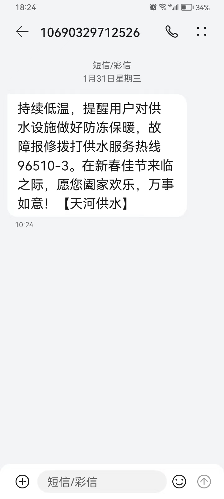 為提高市民防凍保溫意識(shí),公司加大供水設(shè)施防凍保暖宣傳力度,在官網(wǎng)及微信公眾號(hào)發(fā)布防凍溫馨提示,給用戶發(fā)送短信累計(jì)55000余條,提醒市民做好供水設(shè)施的防寒防凍工作。同時(shí),公司還對(duì)各小區(qū)的物業(yè)公司進(jìn)行告知尋訪,持續(xù)巡查重點(diǎn)區(qū)域,在發(fā)現(xiàn)凍損情況時(shí)立即采取措施疏通,組織維修更換。